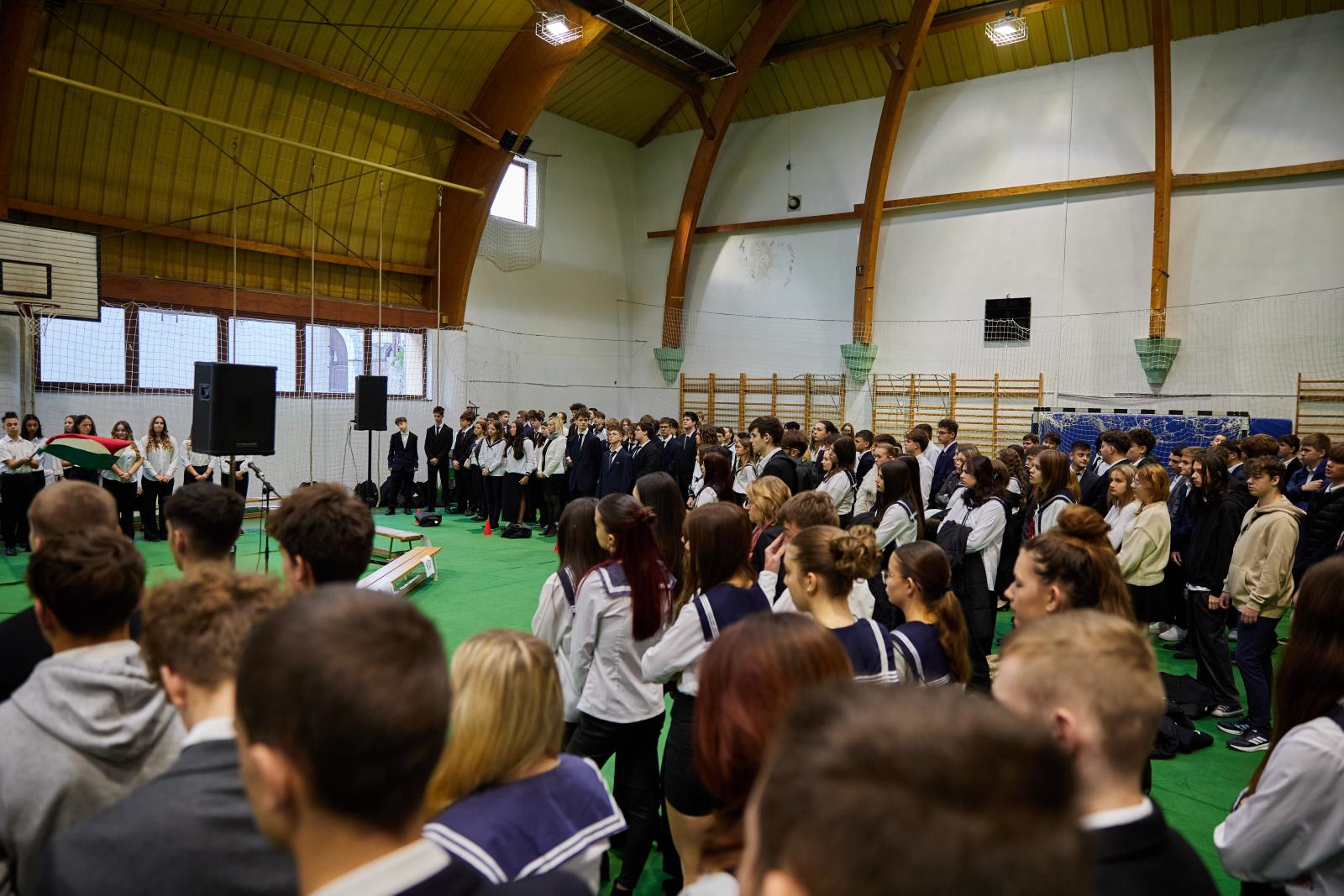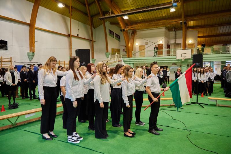 Iskolánk az 1956-os hősök, s a Magyar Szabadságharc emlékére és tiszteletére megrendezett hivatalos, minden esztendőben megrendezésre kerülő október 23. ünnepi műsorát 2025. 10. 22 -én szerdán tartotta az iskola Tornacsarnokában reggel 8 órai kezdettel. Az iskolai megemlékezésen intézményünk minden tanulója, osztálya, dolgozója, s pedagógusa megjelent, ezzel is tisztelegve a magyar forradalom hősei előtt.