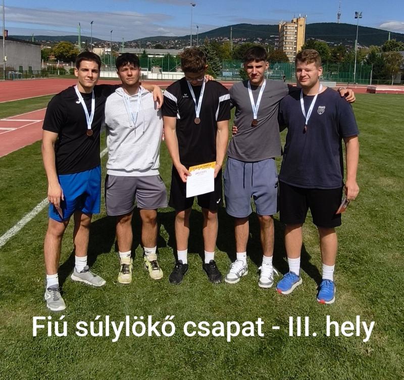 Súlylökés – 3. hely – csapatagok: Bende Zétény 11.A, Fabon Dávid 12.B, Szász Botond 12.C, Hernádi István 12.C, Tóth Noel 12.C