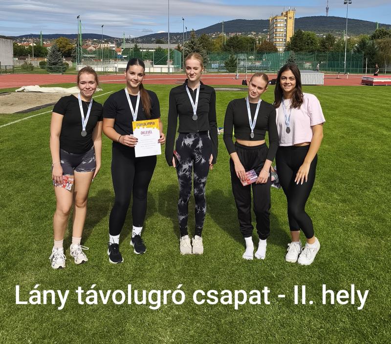 Távolugrás - 2. hely – csapattagok: Gyöngyös Ivett 12.A, Kovácsi Bella 11.A, Török Lili 10.A, Fedelevits Lora 10.B