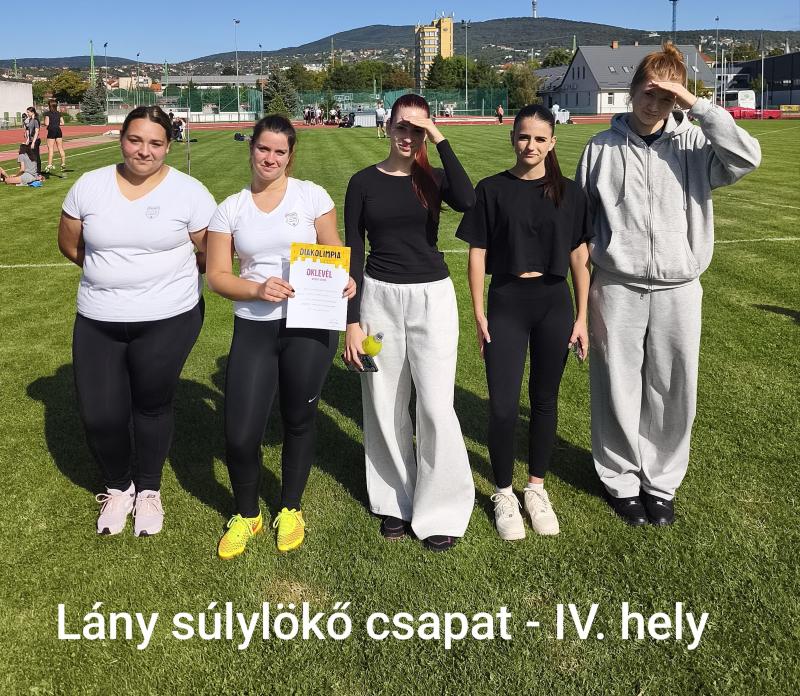 Súlylökés – 4. hely – csapattagok: Gamos Laura 11.A, Varga Magdolna 11.A, Vadász Patrícia 10.A, Herczeg Szofi 11.B, Nagy-József Dóra 10.A