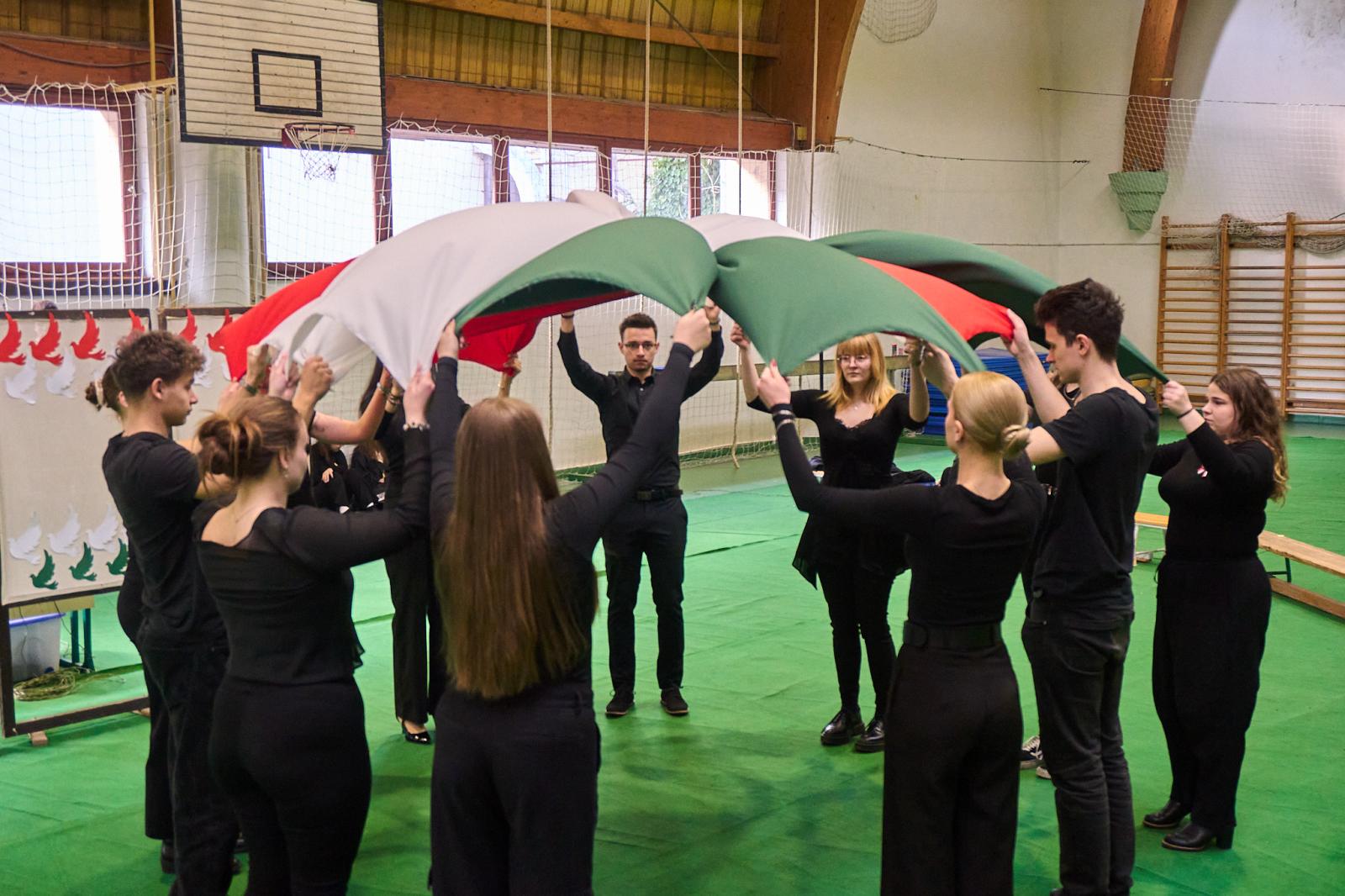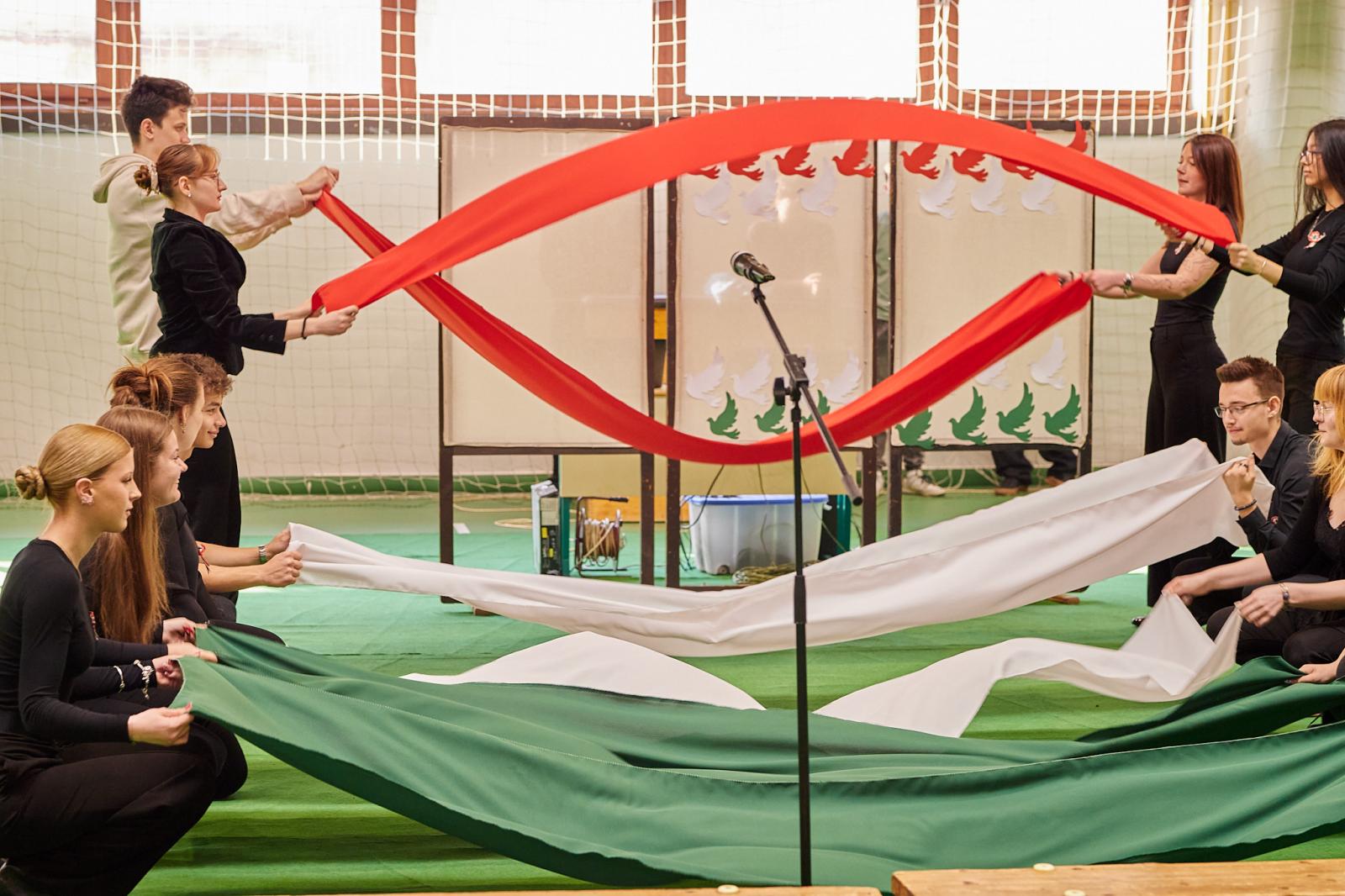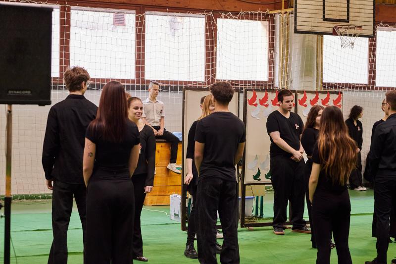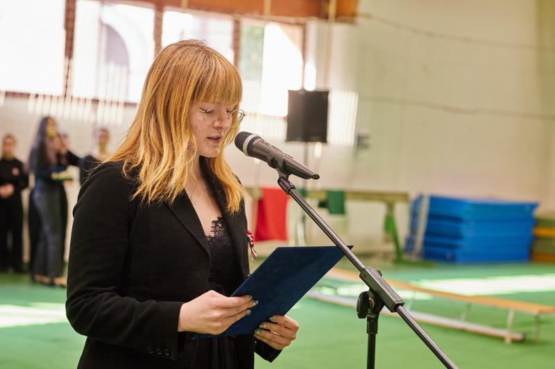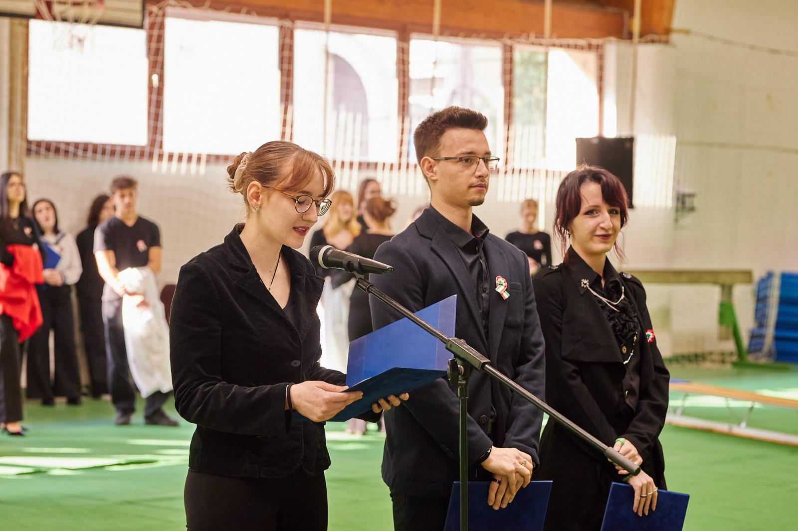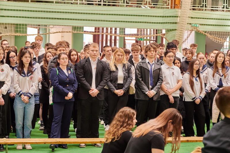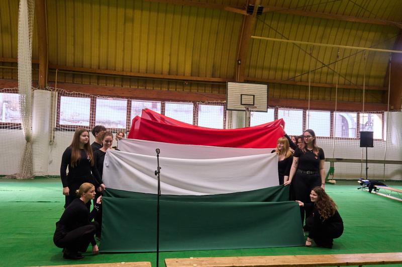 Iskolánk 2025. március 13-án tartotta megemlékező műsorát az 1848. március 15-i forradalom 178. évfordulója alkalmából. A műsorban a 12.B osztály diákjai szerepeltek. A megemlékezés során emléket állítottak nemzeti jelképünk megjelenésének is, melyet Szendrey Júlia készített Petőfi Sándor számára.