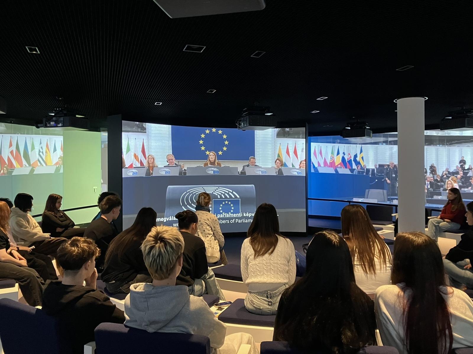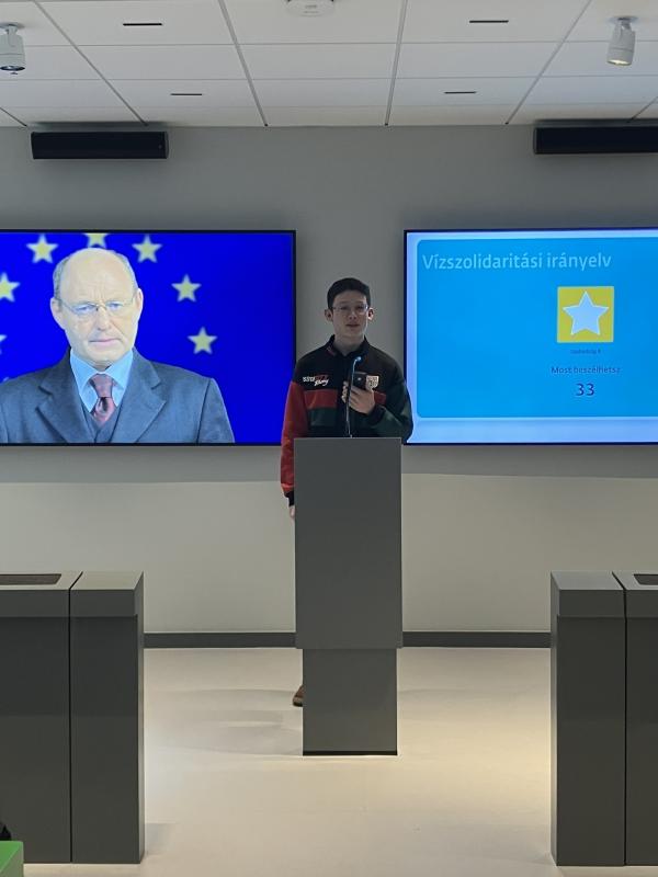 Ezután átsétáltunk egy másik különleges helyszínre, a budapesti Európai Parlament szimulációs központba, amelyet Europa Experience néven ismernek. Ez az élményközpont az EU működését és döntéshozatali folyamatait mutatja be interaktív módon. Legelőször egy kisfilmet néztünk meg ami bemutatta az Európai parlament működését és a fontos tudnivalókat róla. Majd csapatokra lettünk osztva, vagyis pártokra ott kapott telefonok segítségével. Interaktív eszközökkel és kiállításokkal ismerkedtünk meg az Európai Unió intézményeivel. A központban még azt is kipróbálhattuk, hogyan hoznak jogszabályokat az Európai Parlamentben. Csoportokra osztva szerepjátékot játszottunk, ahol mi voltunk az EP képviselői és törvényjavaslatot dolgoztunk ki. Ez a játék nagyon izgalmas volt, mert tárgyaltunk, érveket hoztunk fel, és kompromisszumokat kötöttünk. Megtapasztaltuk, milyen nehéz lehet konszenzusra jutni a különböző érdekek között. A központ interaktív elemei segítettek jobban megérteni a demokrácia működését. Különösen érdekes volt látni, hogyan hatnak az európai döntések a mindennapi életünkre. Az interaktív táblák segítségével még többet tudtunk meg az EU-tagállamokról és közös politikákról. Engem mindig is érdekelt ez az egész Európai Uniós téma és örülök hogy ezzel a programmal most kicsit tanulhattunk róla.