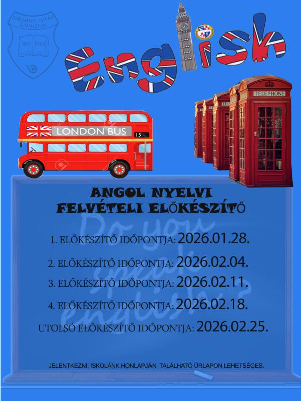 Iskolánk angol nyelvből ingyenes előkészítő tanfolyamot indít a nyelvi tagozatunkra (0030) jelentkezőknek a szóbeli felvételi vizsgára, akik már az általános iskolában is az angol nyelvet tanulták.